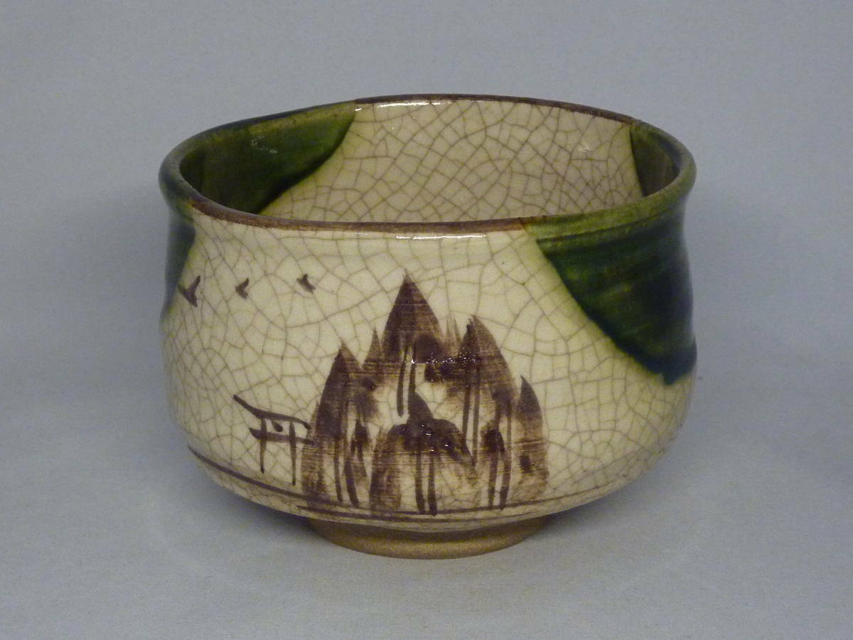 商品:御題 織部茶碗 東窯 春草 中島満久 赤津焼