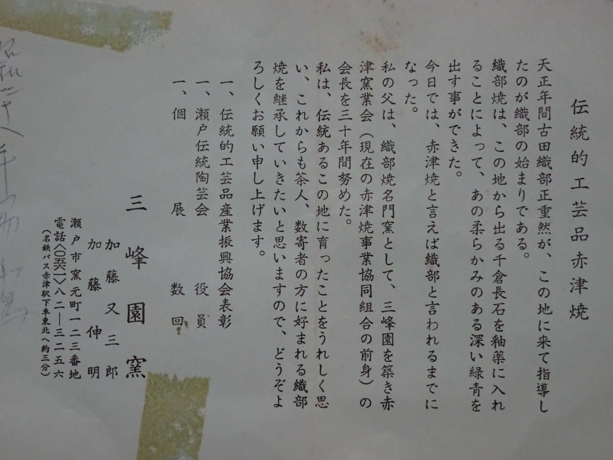 織部茶碗 三峰園窯 赤津焼