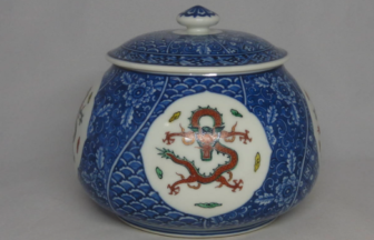 芳国作 染付赤絵龍紋 水指 渋草焼 岐阜県飛騨