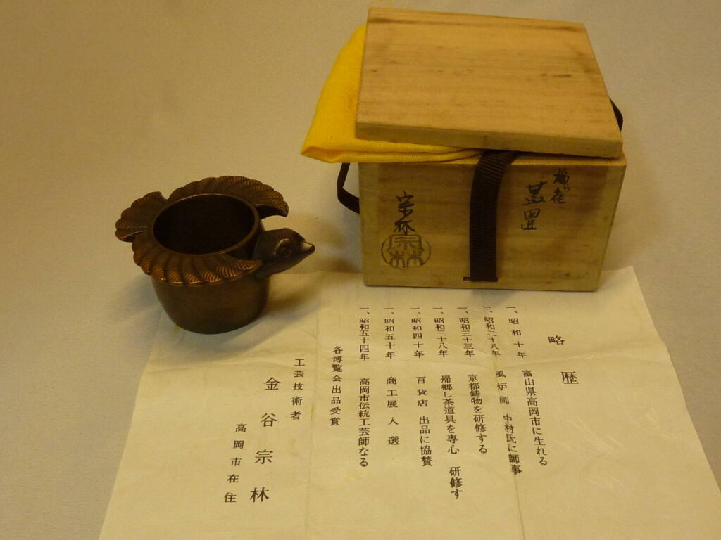 道具:蓋置商品:金谷宗林 鋳造家 唐銅 福ら雀 高岡鋳物状態:共箱・美品価格v20,000円(税込)